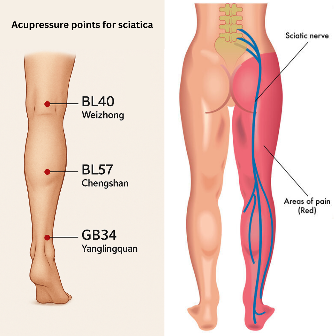 Harness the power of acupressure to relieve sciatica pains in your leg